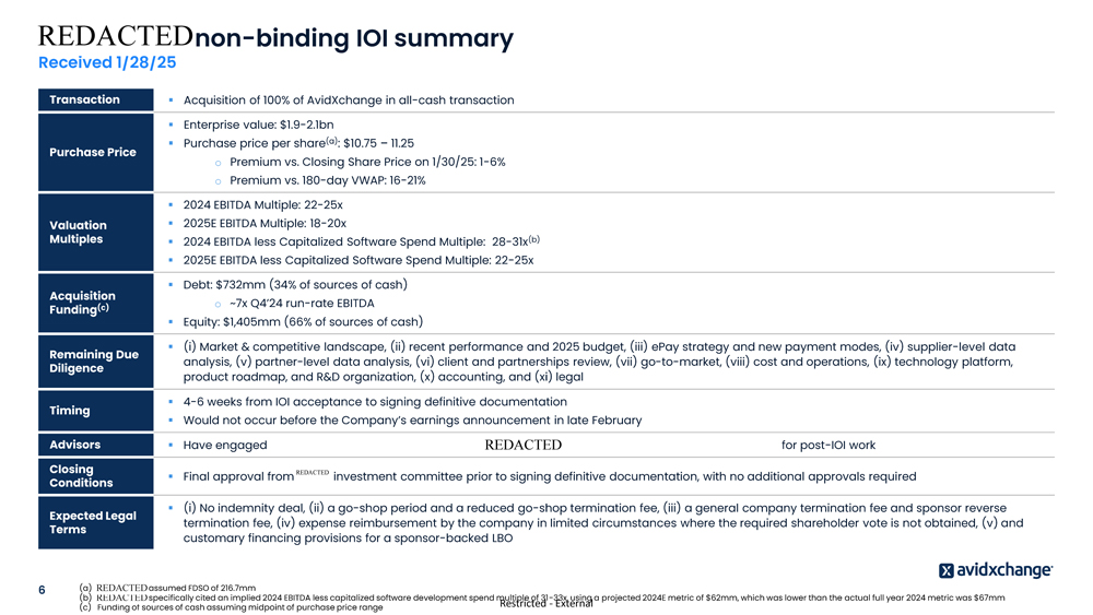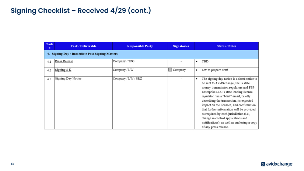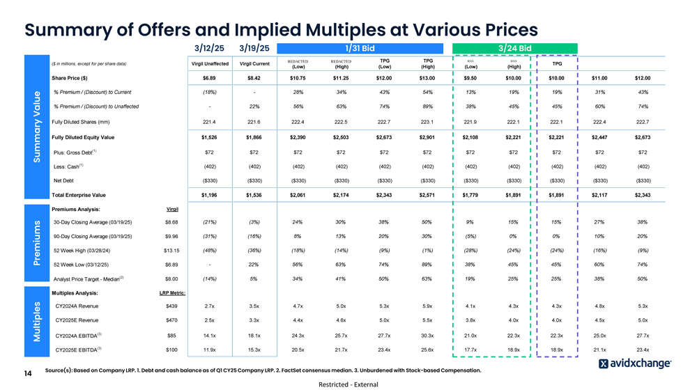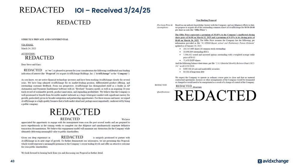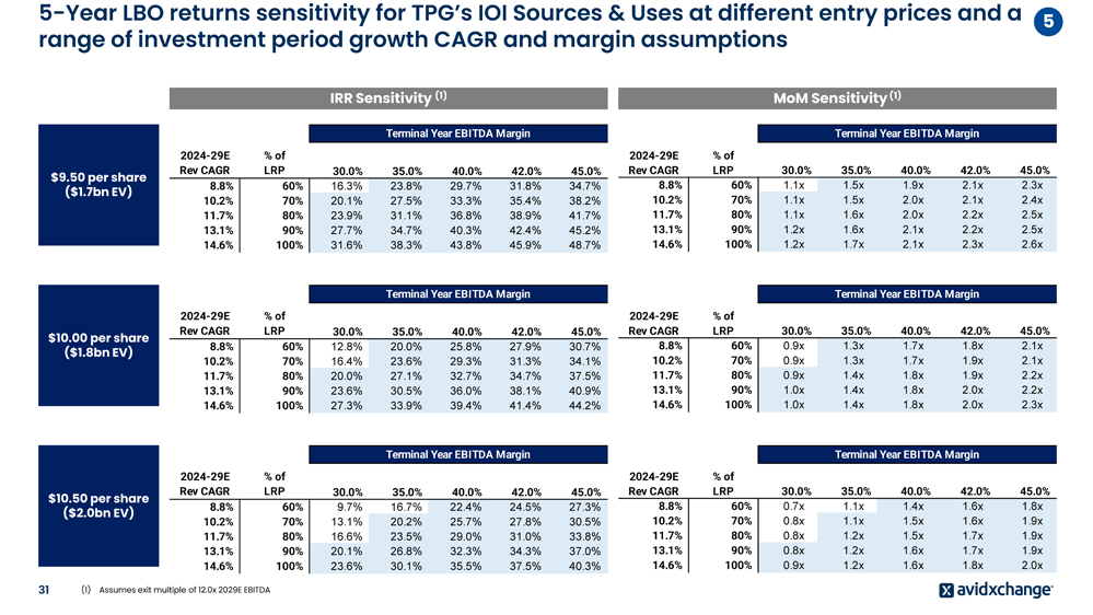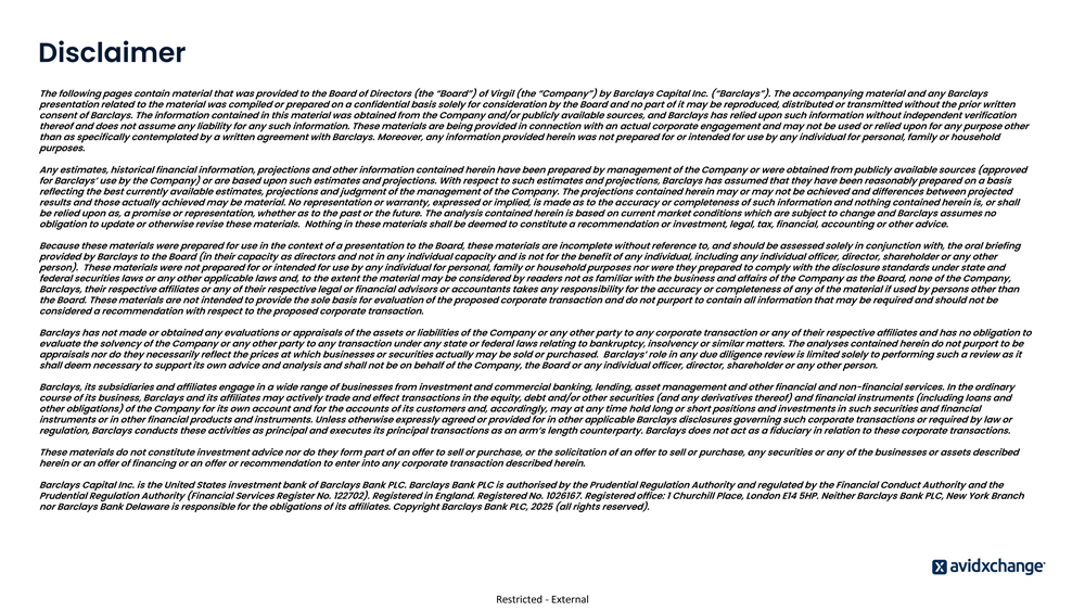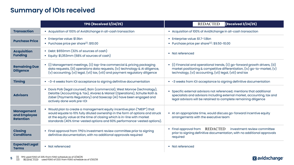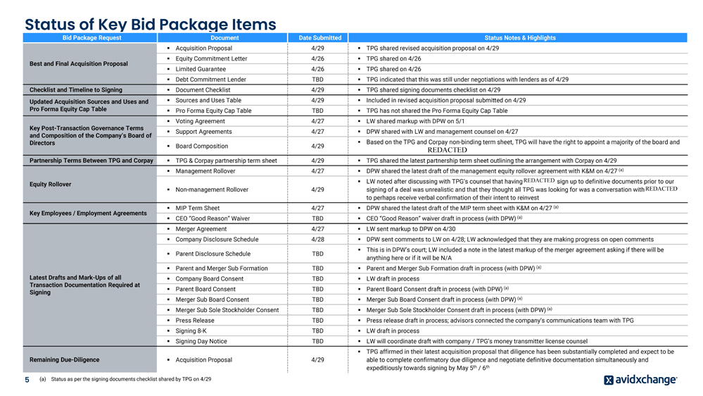 AvidXchange Holdings, Inc. Michael Praeger Green and Gold 2014 GRAT Green and Gold 2015 GRAT c/o AvidXchange Holdings, Inc. Michael Praeger Chief Executive Officer 1210 AvidXchange Lane Charlotte, NC 28206 (800) 560-9305 | Arrow Borrower 2025, Inc. Arrow Merger Sub 2025, Inc. Arrow Intermediate 2025, Inc. Arrow Holdings 2025, Inc. Arrow Parent 2025, L.P. Arrow Parent GenPar 2025, LLC TPG IX Arrow Parent Holdings, L.P. Arrow Parent Holdings GenPar 2025, LLC The Arrow Holdings Business Trust TPG Partners IX, L.P. c/o TPG Partners IX, L.P. 301 Commerce Street, Suite 3300 Fort Worth, TX 76102 (817) 871-4000 | Corpay, Inc. Alissa Vickery Chief Financial Officer 3280 Peachtree Road, Suite 2400 Atlanta, GA 30305 (770) 449-0479 | ||||